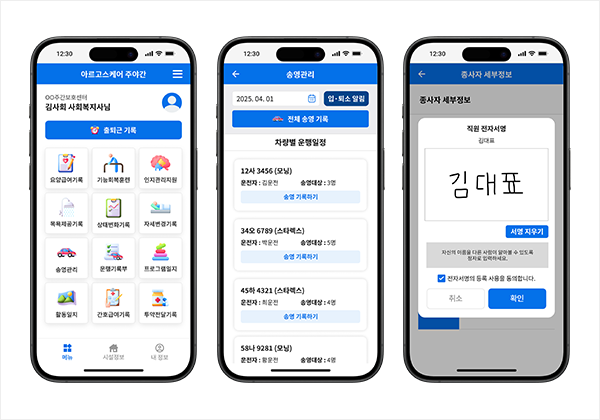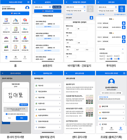 아르고스케어 장기요양기관 평가프로그램 모바일 앱을 사용하여, 주야간보호센터의 업무 기록을 편리하게 작성·관리할 수 있습니다.