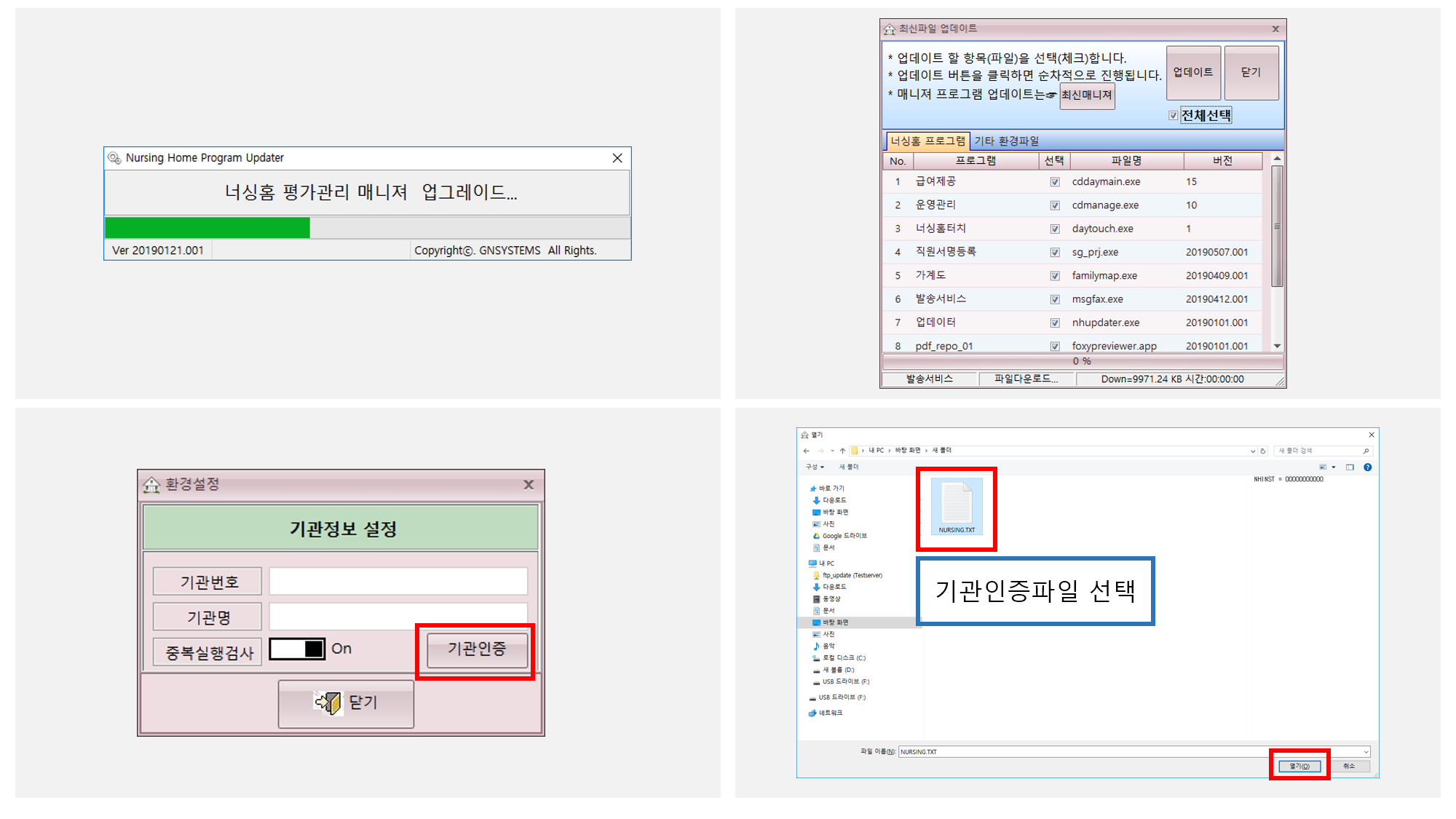 2019.10.01 이상의 버전에서는 기관인증 버튼이 인증파일 가져오기로 변경되었습니다.