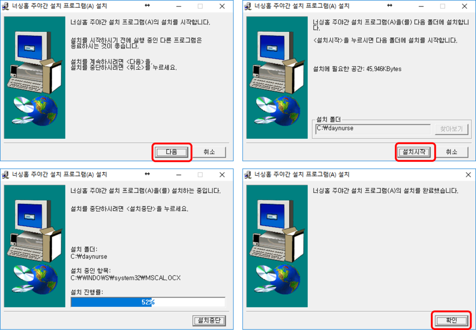 시설 및 주야간 설치방법은 동일하니 아래 그림순으로 진행하세요