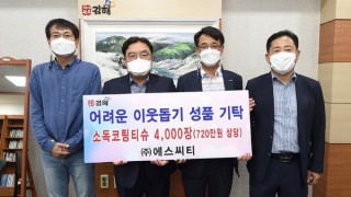 ㈜에스씨티(대표이사 서창성)이 지난 29일 김해시를 방문하여 코로나 예방을 위해 사용해 달라며 방역코팅티슈 4,000장(720만원 상당)을 기탁했다. 이날 기탁된 성품은 관내...